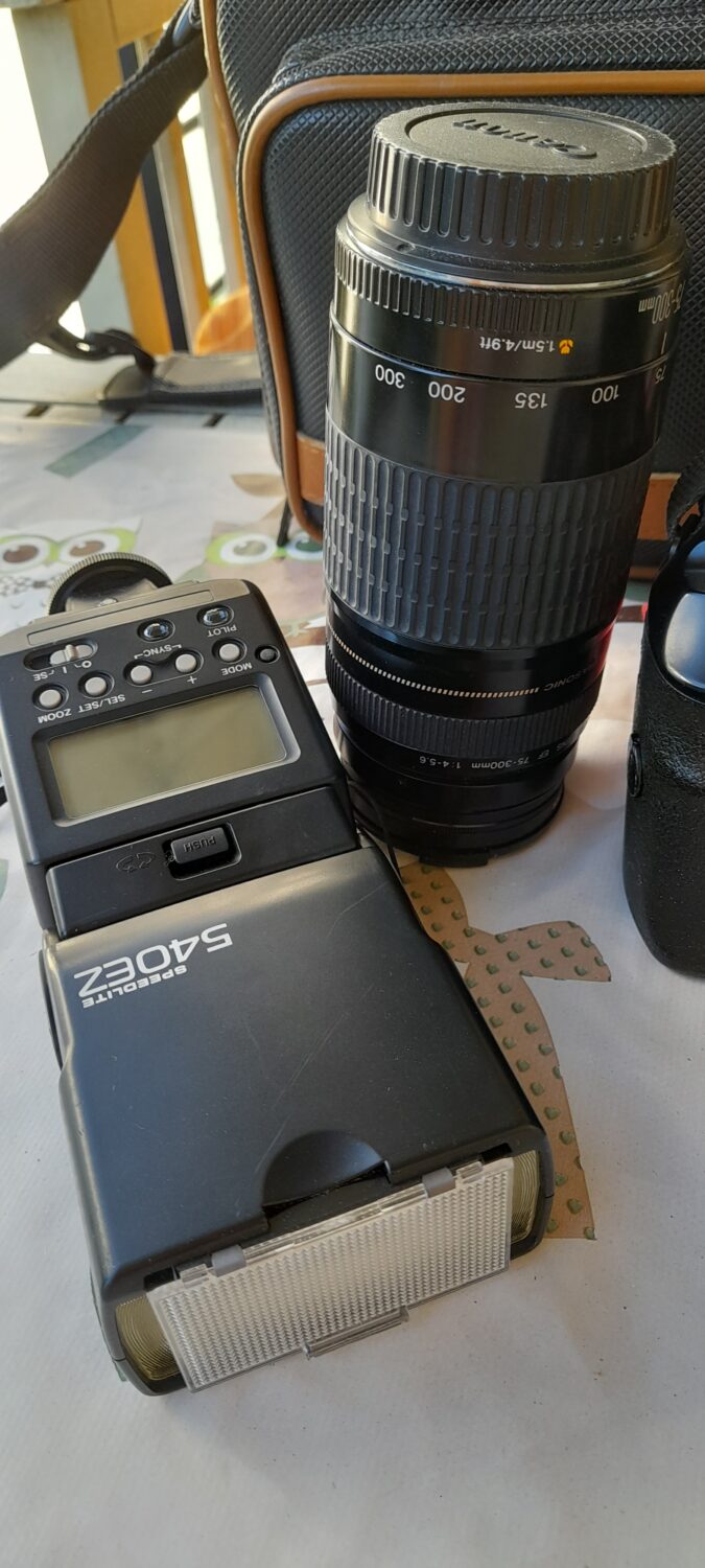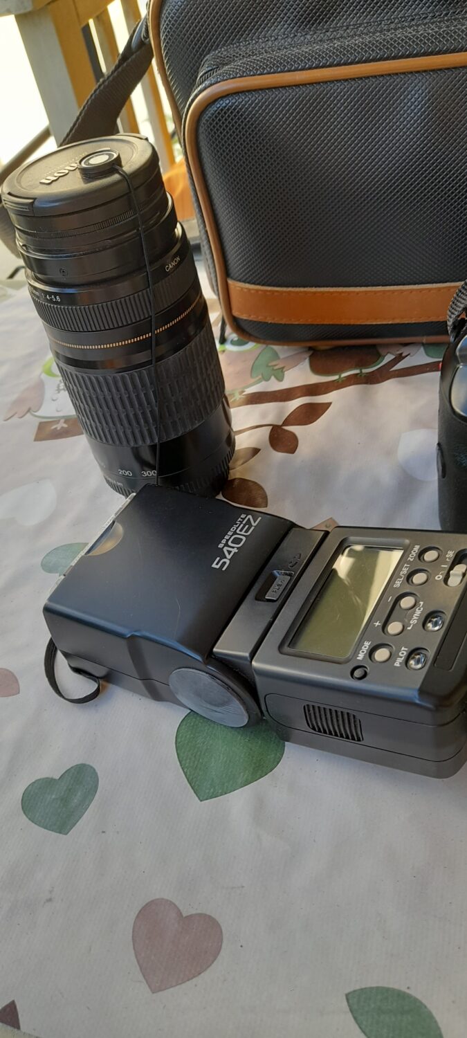 Περιέχει φακούς, φλας, τσάντα μεταφοράς,προσπέκτους.
