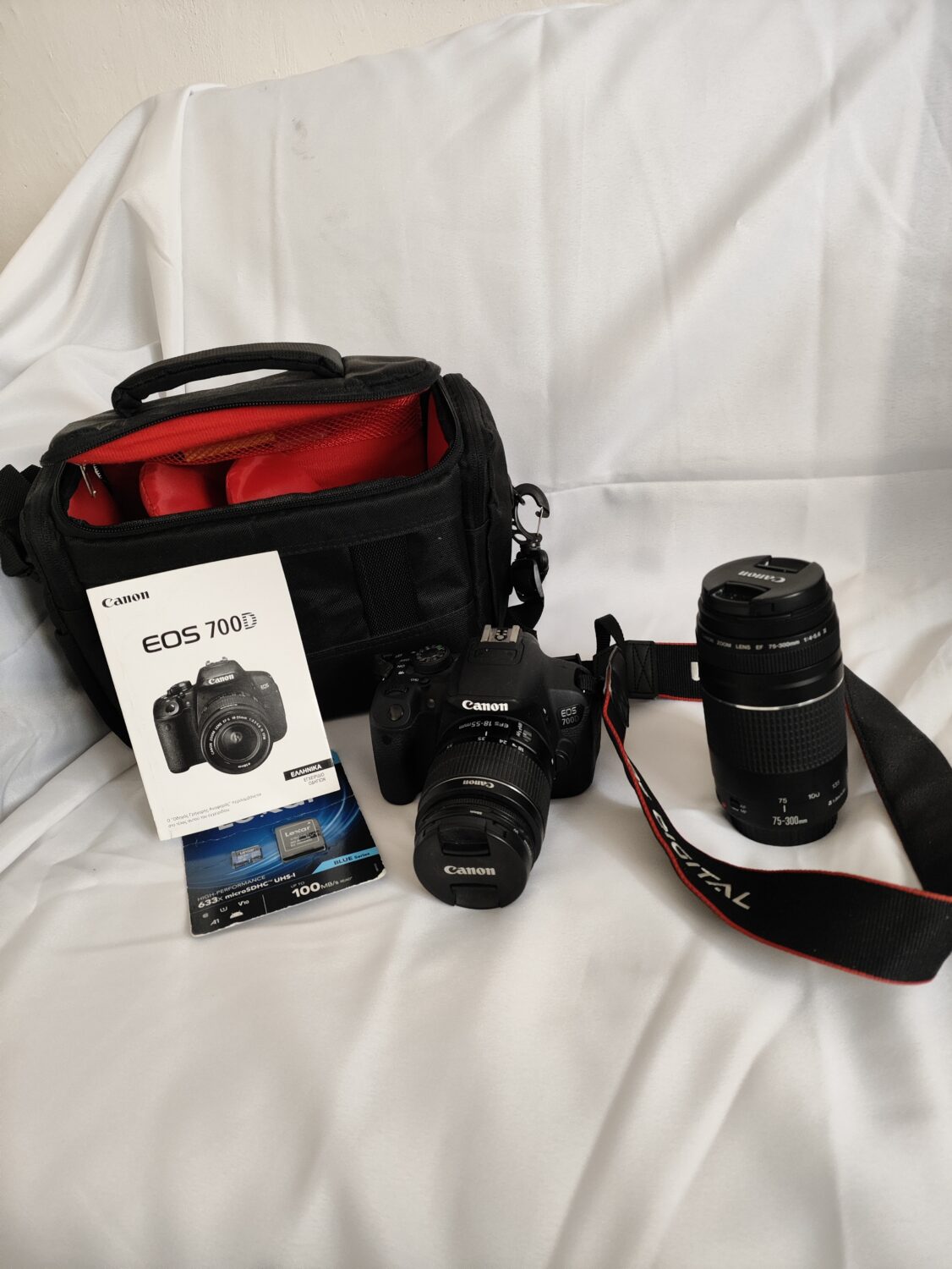 Πωλείται κάμερα Canon 700D με δύο φακούς, γνήσια μπαταρία και φορτιστή μαζί με τσάντα μεταφοράς και κάρτα μνήμης.