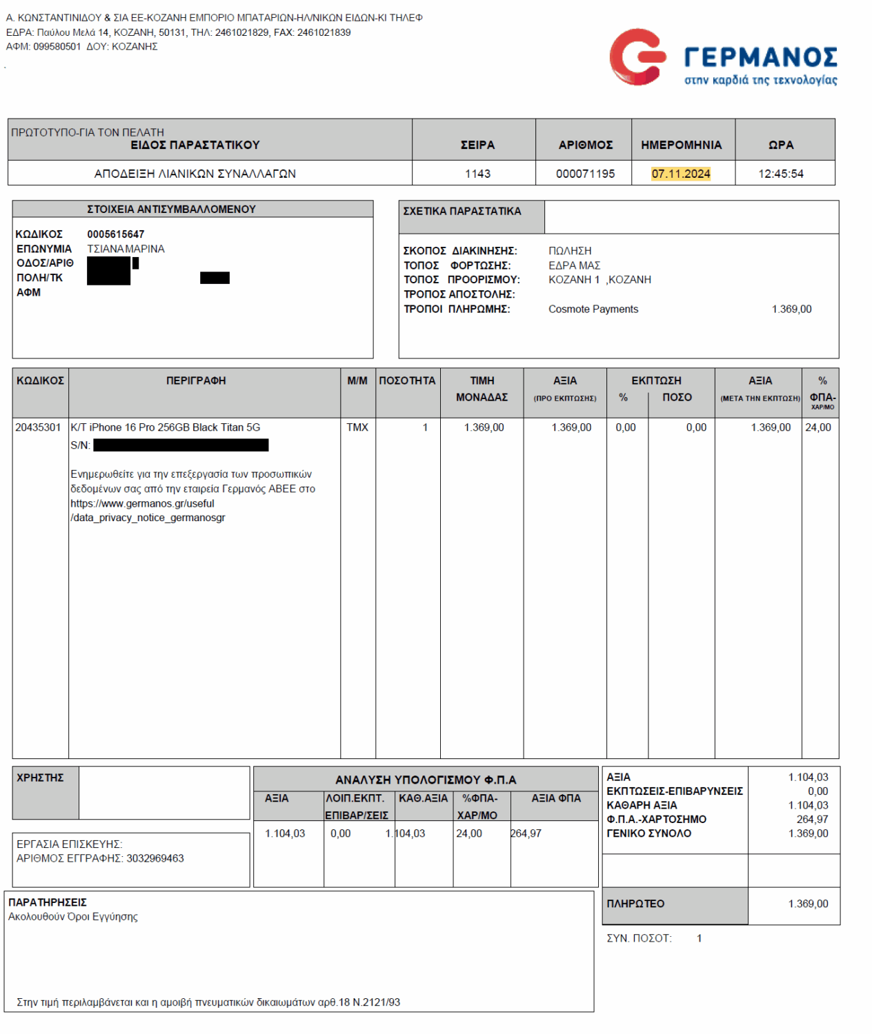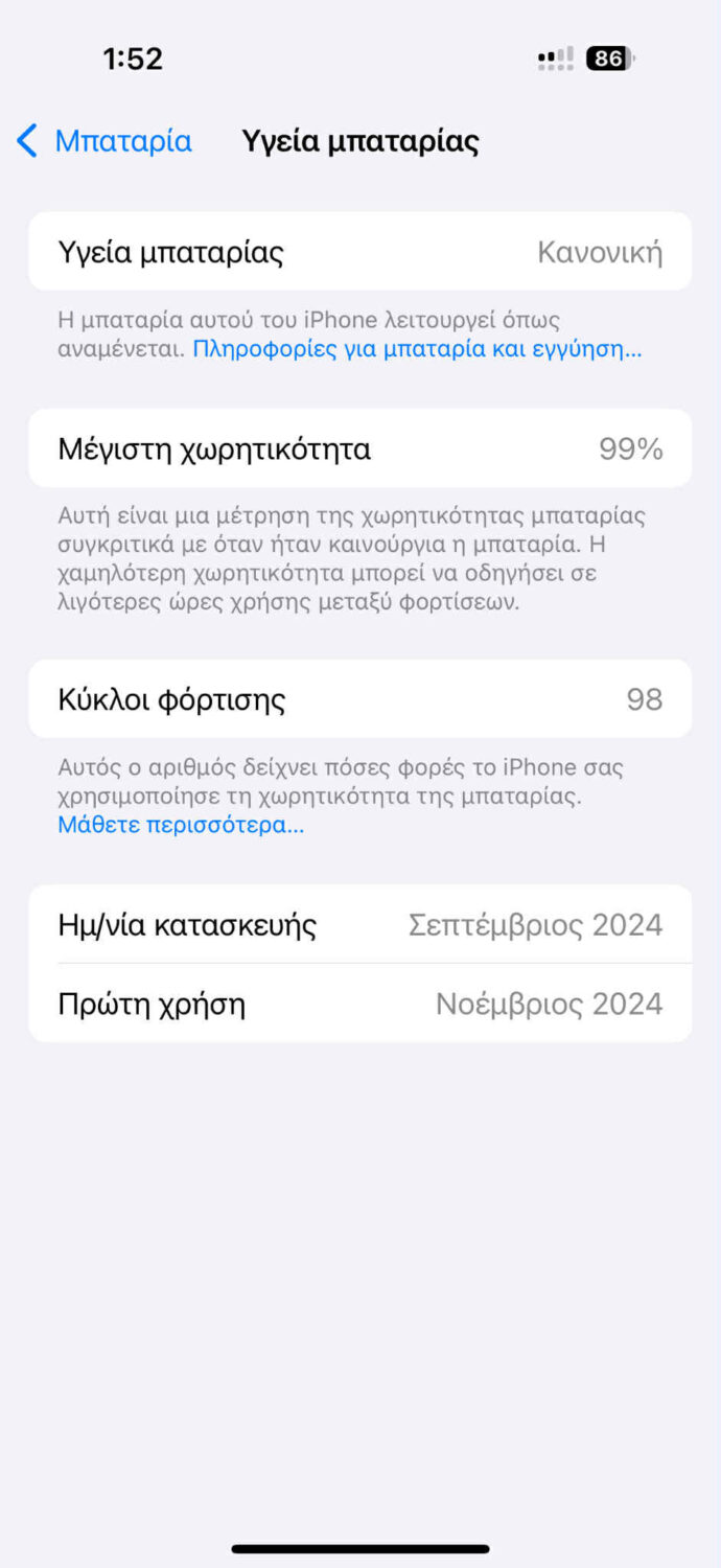 Το κινητό είναι σε άριστη κατάσταση από την πρώτη μέρα με τζαμάκι προστασίας Privacy Tempered Glass σκούρο μαύρο, για να προστατεύει το κινητό τηλέφωνο από τα αδιάκριτα βλέμματα, με προστατευτική θήκη Uniqlifepro XtremeBack Cover  magsafe και προστατευτικά κάμερας. Αγορασμένο από κατάστημα Γερμανός 7/11/2024 με ενεργή εγγύηση και υγεία μπαταρίας 99%, χωρητικότητα 256GB. Μαζί με όλα τα παρελκόμενα, αυθεντικό καλώδιο φόρτισης, κουτί και απόδειξη αγοράς. Υπάρχει επιπλέον φορτιστής ασύρματης φόρτισης magsafe αυθεντικός 15W με επιπλέον 15 ευρώ. Δεκτός κάθε έλεγχος, χωρίς πτώση, χωρίς γρατσουνιά.